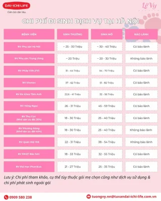 • Tại Hà Nội: BV Phụ sản Hà Nội (25-40 triệu), Phụ sản Trung ương (20-30 triệu).